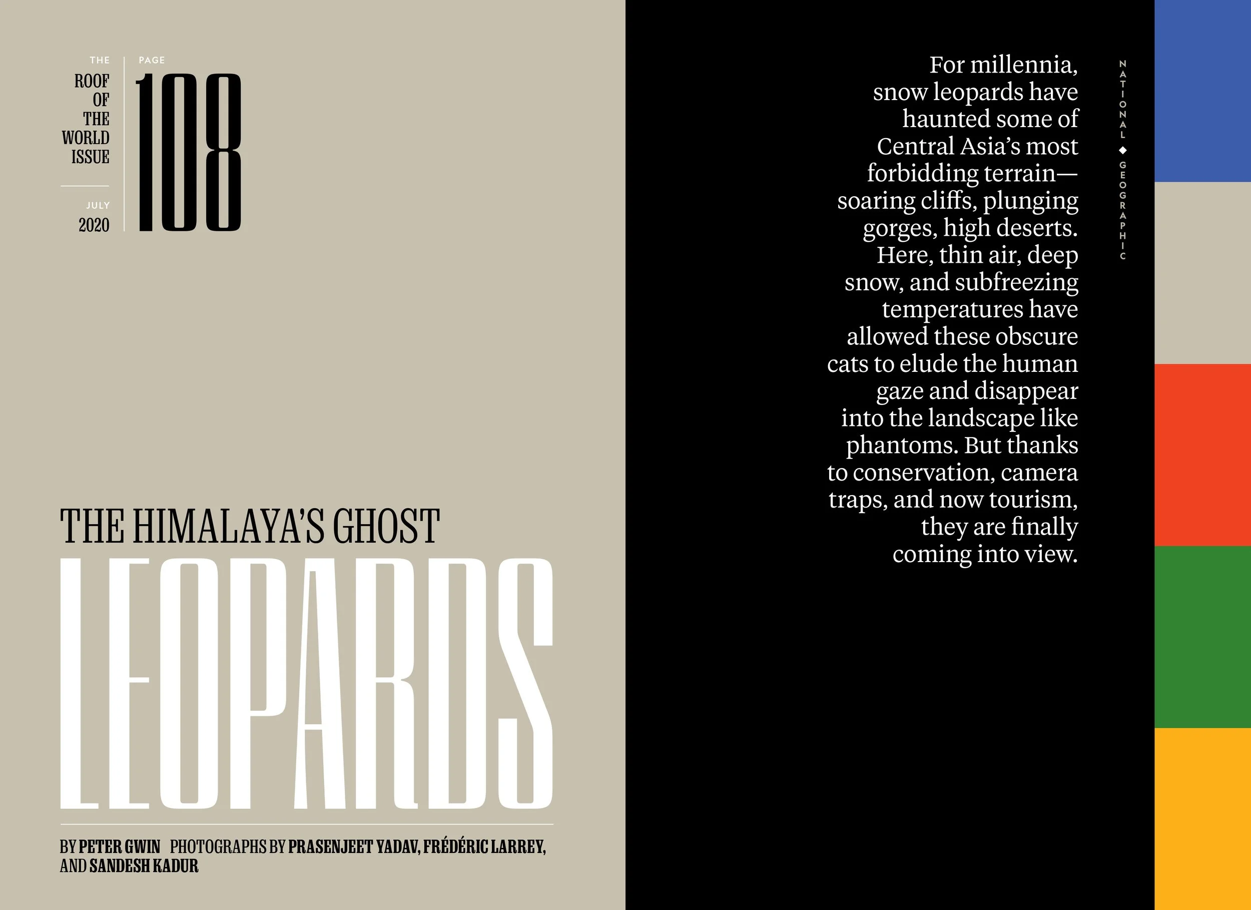 In July 2020, National Geographic sought to solve one of the great mysteries of Everest — who summited it first? The issue also explored the looming water crisis along the Indus river, human-engineered glaciers, the Himalaya’s ghost leopards, and the world’s highest weather station.